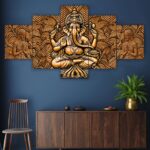 GANESH Set of Five 3D Framed Paintings for Wall Decoration – Ideal for Home, Living Room, and Bedroom (75 x 43 CM)